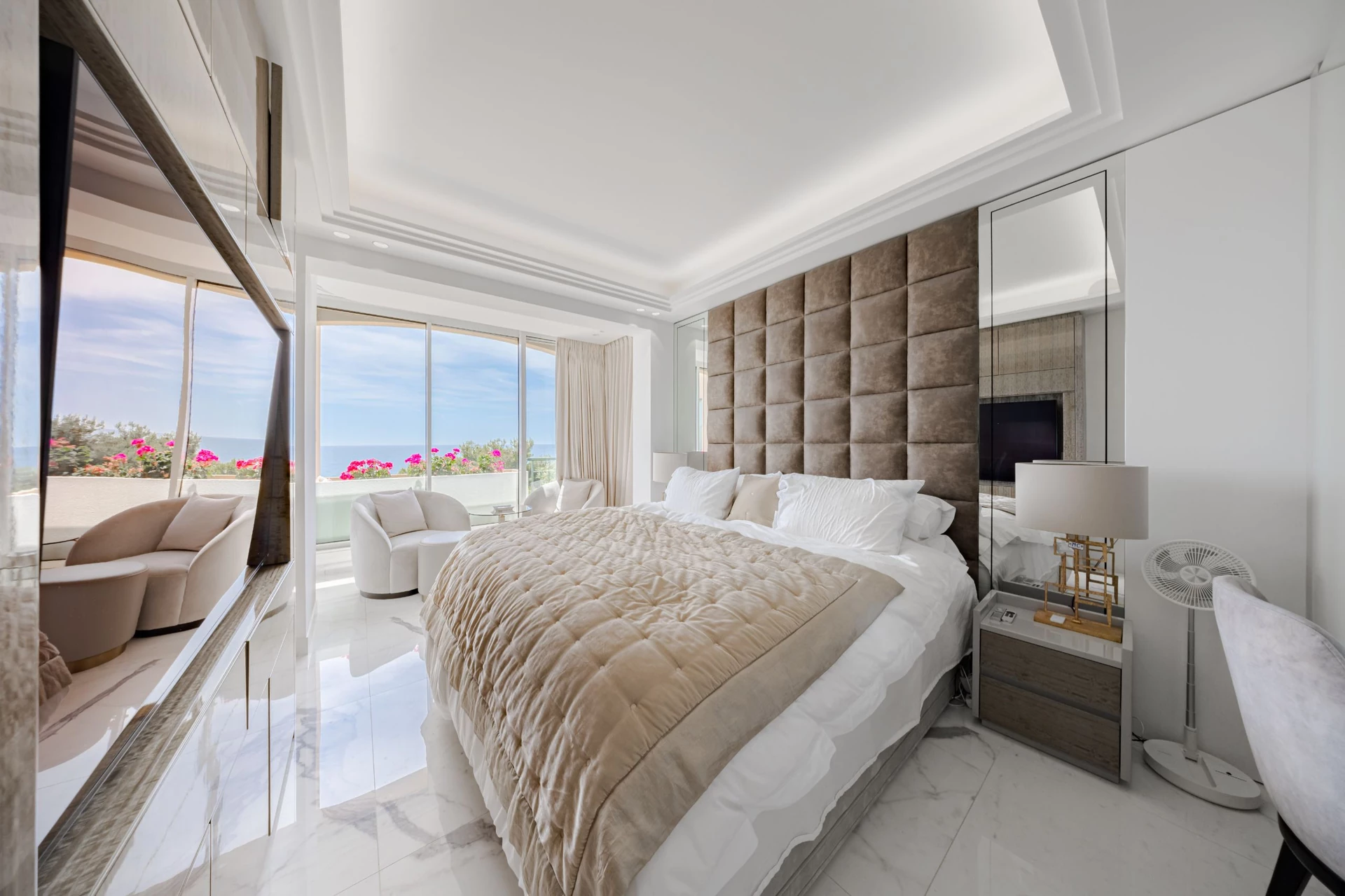 Luxueux 4 pièces entièrement rénové, combinant matériaux de qualité et modernité, avec une vue à couper le souffle sur la Méditerranée et les jardins luxuriants. Cet appartement tout en lumière naturelle, offre des beaux espaces, des triples vitrages allant du sol au plafond et des terrasses en succession harmonieuse. Il bénéficie d'un salon salle à manger comprenant un coin bar chic, la grande cuisine crée sur mesure est équipée avec des électroménagers professionnels, tandis que chaque chambre bénéficie d'une merveilleuse vue sur la mer et sa propre salle de bain ensuite. Une climatisation indépendante et un système de chauffage au sol assurent votre bien-être toute l'année. Les résidents ont accès à un service de conciergerie, à une piscine privative et à un excellent emplacement à proximité du port. Le bien inclut deux places de stationnement souterrain.